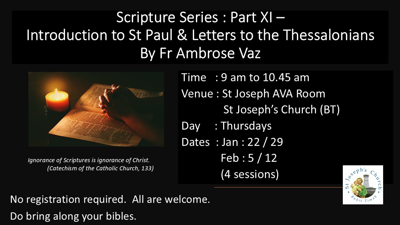 This will be covered over 4 sessions. Every Thursday commencing on 22 Jan. All are welcome. Do bring along your bibles. All are Welcome. No registration required. Do bring along your bibles.