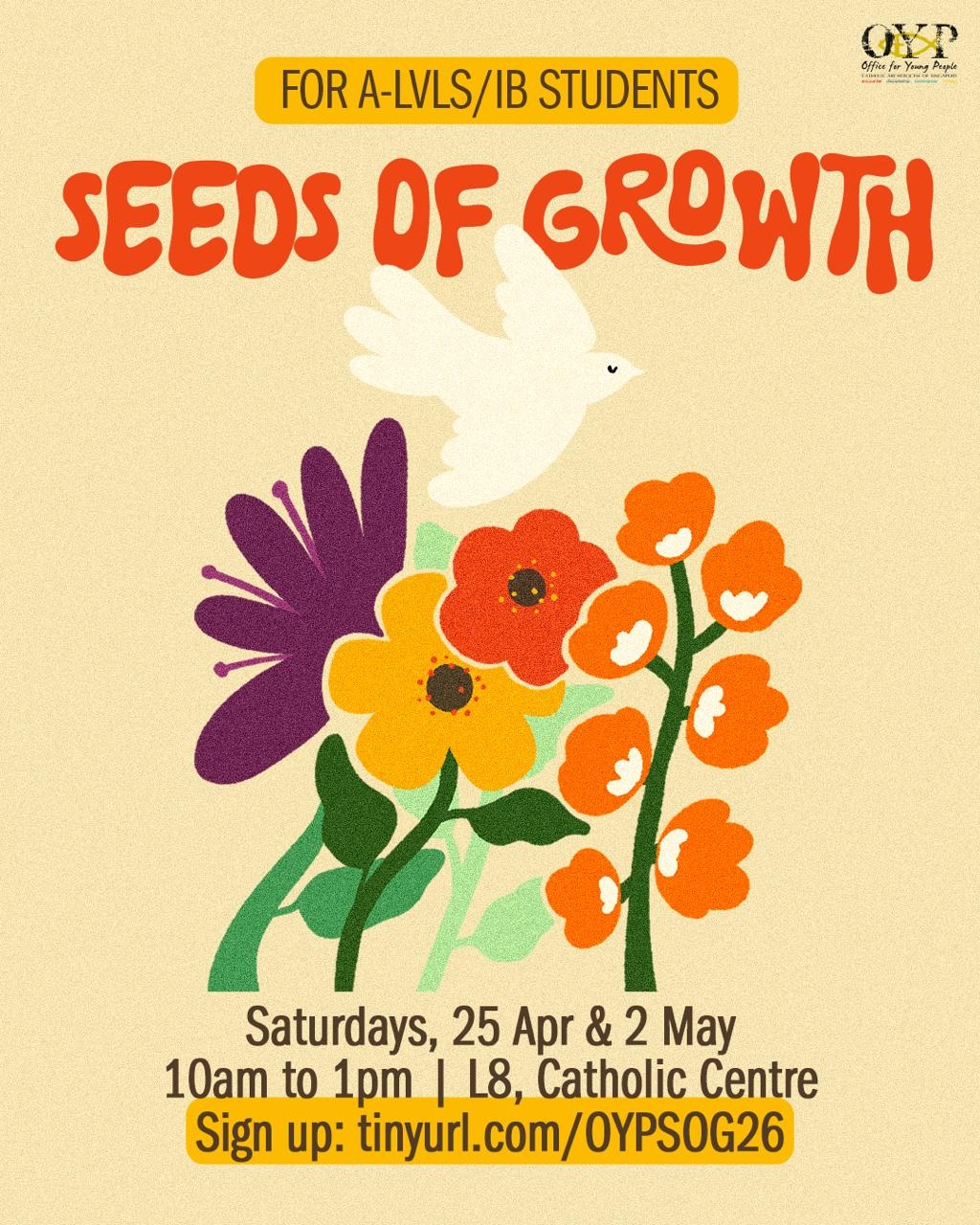 A-Levels and IB students — we’ve got exciting news! Seeds of Growth is back, and we want YOU there! This Easter season, take a little break from the grind, and come experience the joy of being fully alive in Christ!